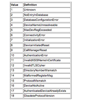 : 37326: Feb 08 06:02:00.522 UTC : %CCM_CALLMANAGER-CALLMANAGER-3-DeviceTransientConnection: Transient connection attempt. Connecting Port:0 Device name [Optional].:my-CONF Device IP address.:192.168.1.11 Protocol.:SCCP Device type. [Optional]:52 Reason Code [Optional].:3 Cluster ID:StandAloneCluster Node ID:MYCMPUB