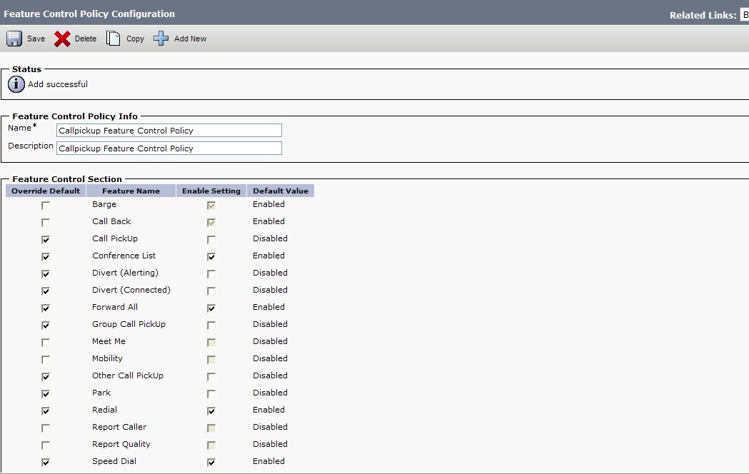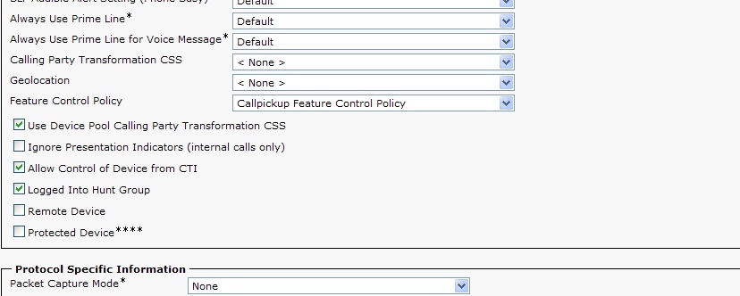 Let me introduce you to the concept of a Feature Control Policy.  A Feature Control Policy allows you to select options that you are traditionally used to defining on a softkey template, but because everyone *loves* change, you now get to define them here – in the place nobody bothered to tell you about.