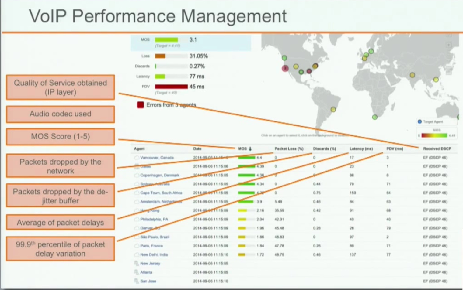 Say you are having trouble with voice between already established sites. This solution can help you identify capacity issues, jitter issues, and even DSCP remarking issues. That last one really makes me smile. How often is voice wrecked just because consistent QoS isn’t applied across all devices in the network? No need to answer that out loud, we all know…