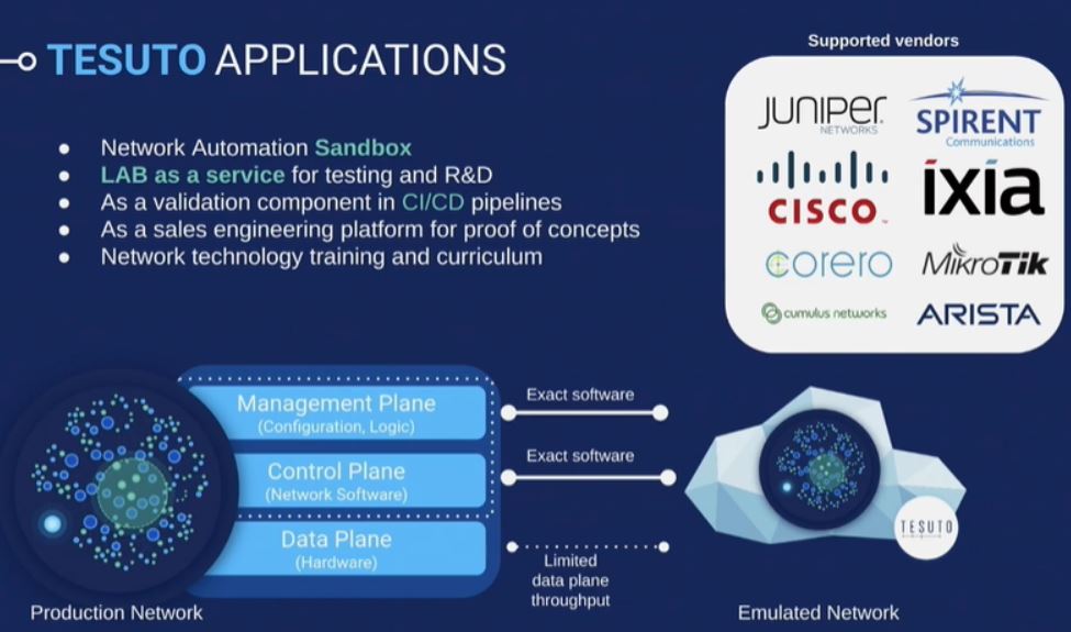With the cloud eating everything, it’s about time that it started giving back to engineers – and that is what Tesuto seeks to do.  Tesuto leverages cloud to perform large scale emulation of networks, while allowing engineers to leverage modern automation tools and testing along the way.