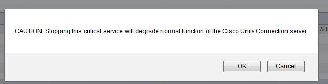 Both servers after reboots established voicemail services (voicemail boxes available, call handlers working, etc…) in a matter of 10 – 15 minutes, but watching the RTMT tool, the CM platform services go into a CRITICAL DOWN state for about 30 mins, before eventually settling in an up state. Cisco Unified Serviceability was unreachable during this time, but voicemail services were working. No answer from TAC or forums as to anyone seeing this before and if this is going to cause long term issues.